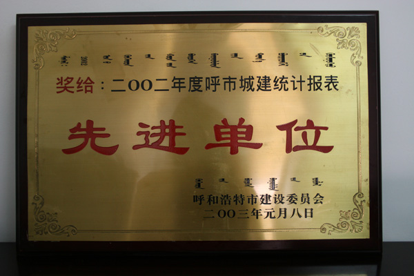 二00二年度呼市城建統(tǒng)計報表先進單位