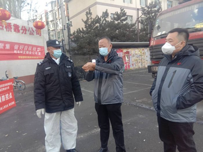 物業(yè)公司黨支部書記娜仁、經(jīng)理史濤等疫情防控領(lǐng)導(dǎo)小組成員還在項(xiàng)目現(xiàn)場(chǎng)參加出入人員登記、測(cè)溫、人員勸導(dǎo)疏散等防控工作。