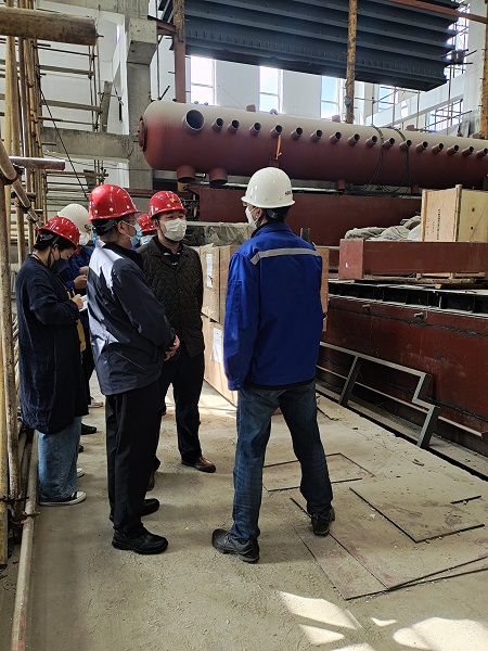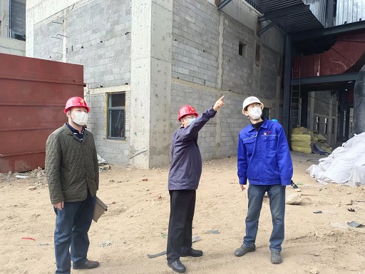 在三合村分公司200T燃煤熱水鍋爐等量替換工程現(xiàn)場,楊杰詳細(xì)聽取了工程的進(jìn)展及復(fù)工復(fù)產(chǎn)工作準(zhǔn)備情況,并針對目前存在的困難和問題,現(xiàn)場辦公研究解決方案。