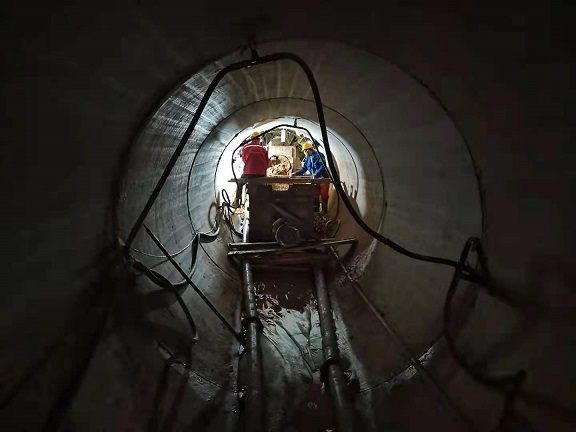 工程負(fù)責(zé)人趙永軍介紹,工程采用頂管方式橫穿河道,穿越東河的距離是190多米,先通過頂管方式將供熱管線的套管鋪設(shè)過河,將套管內(nèi)的泥沙運(yùn)空,再鋪設(shè)供熱管道,套管內(nèi)徑是2.4米、外徑達(dá)到了2.88米,此次沉井頂管工程,僅施工費(fèi)用就達(dá)1000多萬元。目前是呼市地區(qū)頂管距離是最長、施工難度最大的工程。為了按期完工,現(xiàn)工人們實(shí)行24小時(shí)三班倒,每個(gè)班是8個(gè)人,人停機(jī)器不停,平均每天6根管進(jìn)度,即推進(jìn)15米,預(yù)計(jì)需要1個(gè)月的時(shí)間完成頂管任務(wù)。