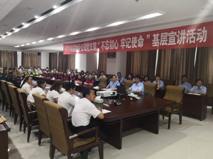 6月17日,城發(fā)物業(yè)公司黨支部開展“不忘初心 牢記使命 爭做最美物業(yè)人”基層宣講活動。活動由物業(yè)公司黨支部書記娜仁同志主講,物業(yè)公司基層的員工代表及合同制員工共計82人參加了宣講活動。
