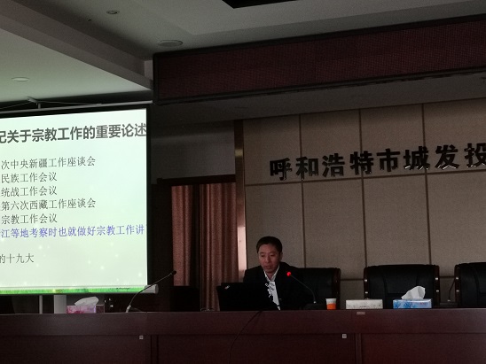 11月5日,城發(fā)公司黨委邀請(qǐng)市黨校黨史黨建教研室副教授、內(nèi)蒙古習(xí)近平新時(shí)代中國(guó)特色社會(huì)主義思想研究中心研究員蘇航同志在公司18樓會(huì)議室開展了“扎實(shí)做好新時(shí)代我區(qū)宗教工作——全面貫徹習(xí)總書記關(guān)于宗教工作重要論述”的專題講座。公司領(lǐng)導(dǎo)班子、全體中層干部約90人進(jìn)行了集中學(xué)習(xí)。