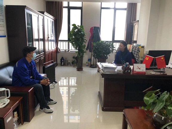 此次活動(dòng)主要訪談接待公司困難職工,了解他們?cè)诠ぷ?、生活及家庭方面存在的困難,征求意見建議,力所能及的幫助解決實(shí)際問題。黨支部書記郭依群還接待了公司新入職的職工,和他們促膝而談,詳細(xì)介紹了公司的發(fā)展情況,鼓勵(lì)他們要發(fā)揚(yáng)青年職工敢于爭(zhēng)先、吃苦耐勞的精神。同時(shí)郭依群同志還同積極入黨的同志進(jìn)行了談心談話,了解其思想動(dòng)態(tài)和工作情況,并要求他們要加強(qiáng)學(xué)習(xí)、提高思想認(rèn)識(shí)和政治覺悟,時(shí)刻以共產(chǎn)黨員的標(biāo)準(zhǔn)要求自己,爭(zhēng)取早日入黨。