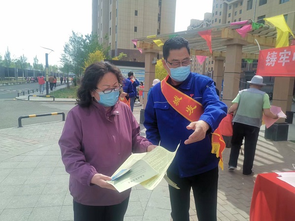 活動(dòng)現(xiàn)場,黨支部書記娜仁按照既定方案,帶領(lǐng)大家分頭行動(dòng)起來。“民族政策宣傳組”的隊(duì)員們一邊向過往的居民發(fā)放黨的民族理論和民族政策宣傳單,一邊做好現(xiàn)場宣傳講解,重點(diǎn)宣傳了黨的民族政策的主要內(nèi)容、民族平等政策的內(nèi)涵、民族區(qū)域自治政策的內(nèi)涵、現(xiàn)階段我國民族工作的主題、現(xiàn)階段發(fā)展少數(shù)民族經(jīng)濟(jì)的方針、民族團(tuán)結(jié)關(guān)系的“三個(gè)離不開”內(nèi)容、民族團(tuán)結(jié)工作的“四個(gè)維護(hù)”內(nèi)容及習(xí)近平總書記對(duì)各民族提出的“五個(gè)認(rèn)同”等內(nèi)容;講解了如何理解“中華民族共同體意識(shí)”、如何理解“推廣普及國家通用語言文字教育”等內(nèi)容。“安全防火宣傳組”的隊(duì)員們分三組入樓開展安全防火宣傳檢查,重點(diǎn)對(duì)樓道內(nèi)個(gè)別存在的亂堆放雜物、亂停非機(jī)動(dòng)車及擅自占用、堵塞消防通道的住戶張貼清理通知單、宣傳將樓道占為己用的重大安全隱患,并告知業(yè)主限期自行清理,切實(shí)保障廣大業(yè)主的居住安全和環(huán)境衛(wèi)生。